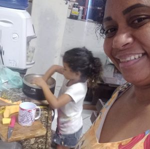 “Meu nome é Joelma, tenho 40 anos. Sou avó de 3 crianças, inclusive da Laura que é assistida pelo Instituto. Moro em Magé e trabalho no Leblon. Tenho uma filha de 4 anos que se chama Maitê. Aprendi com vocês nas palestras algumas coisas, mas o que eu mais levei para o meu coração foi o tempo que eu não tinha com a minha filha. Eu chegava em casa cansada e tinha que fazer jantar. Comecei a chamá-la para me ajudar a fazer a comida. Claro, é uma bagunça, mas é válido, pois fico muito tempo fora de casa. Obrigada!”