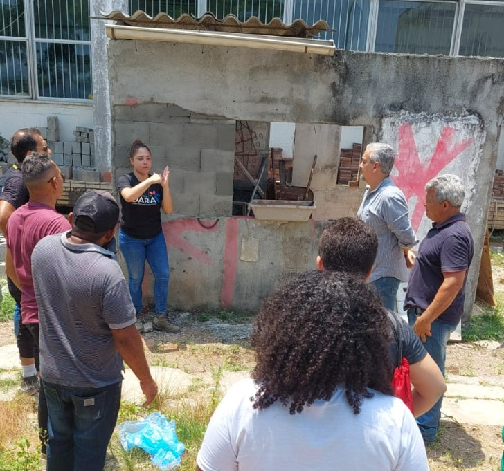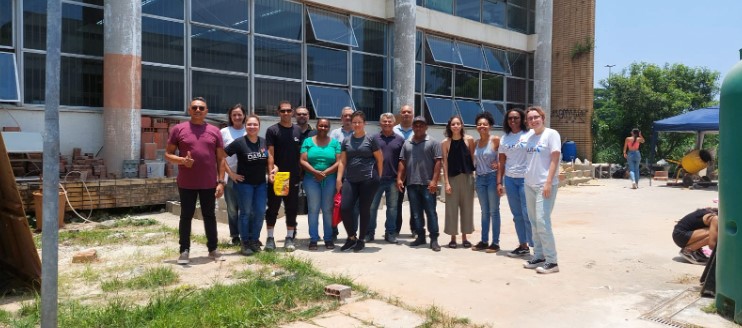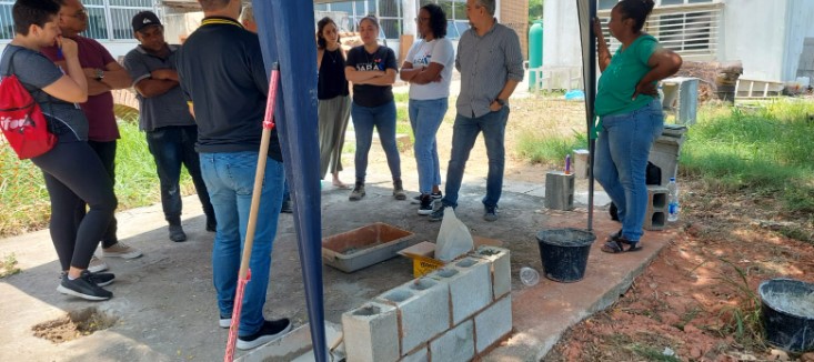 Durante a aula experimental, estudantes, profissionais e famílias puderam aprender na prática como reparar problemas de infiltração. A manhã começou com as boas vindas do Professor Marcos Silvoso, responsável pelo Laboratório de Materiais de Construção da universidade que ressaltou a importância da parceria para a atuação em campo dos estudantes extensionistas. Ele lembrou também o papel da universidade pública, que está aberta a todos, e que busca devolver para a sociedade a aplicação do conhecimento. Raquel Menezes Cordeiro, coordenadora da área de moradia do Instituto Dara explicou sobre a atuação da organização e a apresentou de alguns estudos de caso de intervenções e consultorias prestadas pelo instituto às famílias. Ela lembra que um dos pilares do Plano de Ação Familiar – PAF, metodologia do Instituto Dara, prevê a participação da família em cada decisão. “No Dara é assim, a gente dá um passo e a família dá outro. Entregamos uma reforma em branco e a família pinta de azul, por exemplo”. Em seguida, foi o momento de colocar a mão na massa e aprender como refazer e impermeabilizar fachadas e lages.